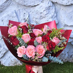 Red roses with red ribbon Bouquet of 100 Red Roses